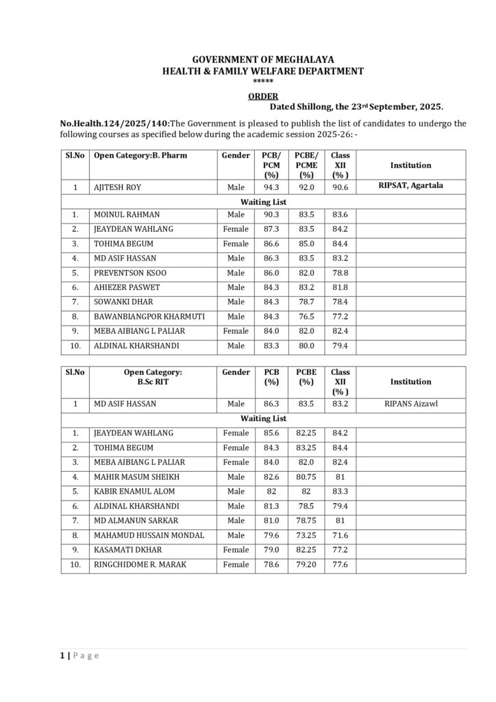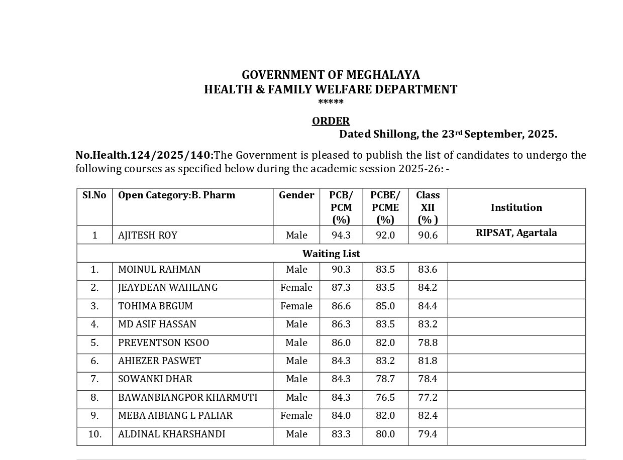 Next: List of candidates to undergo B.Sc Nursing course as specified below during the academics session 2025-26